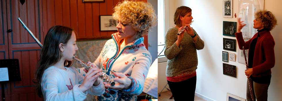 Je leert bijvoorbeeld zelf liedjes schrijven en spelen en ritmes klappen. Er wordt veel aandacht besteed aan het voorstellingsvermogen; bijvoorbeeld door kinderen verhaaltjes of figuren op hun fluit te laten uitbeelden. Op de les speel ik veel duetten met de leerlingen en begeleid ik op de piano, zodat samenspel elke les aan bod komt, vanaf de eerste les. Ook werk ik regelmatig met boeken met CD, zodat je thuis ook kunt ‘samenspelen’.