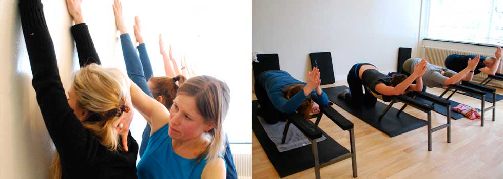 Om die ruimte op te zoeken, ook als je thuis studeert, is het fijn om een aantal oefeningen paraat te hebben. Yoga biedt vele oefeningen die hier erg geschikt voor zijn. Om ze zo optimaal mogelijk uit te kunnen voeren - en ze ook goed uitgelegd te krijgen - werkt Christine samen met yogadocente Helene Heslenfeld. Een paar keer per jaar geeft zij aan een yogales die speciaal op fluitisten is toegespitst. Helene is yogadocent in Amsterdam met jarenlange ervaring, ook op gebied van RSI. In Helenes lessen is er veel persoonlijke aandacht en de correcties die Helene geeft zijn al voor veel mensen 'eye-openers' geweest.